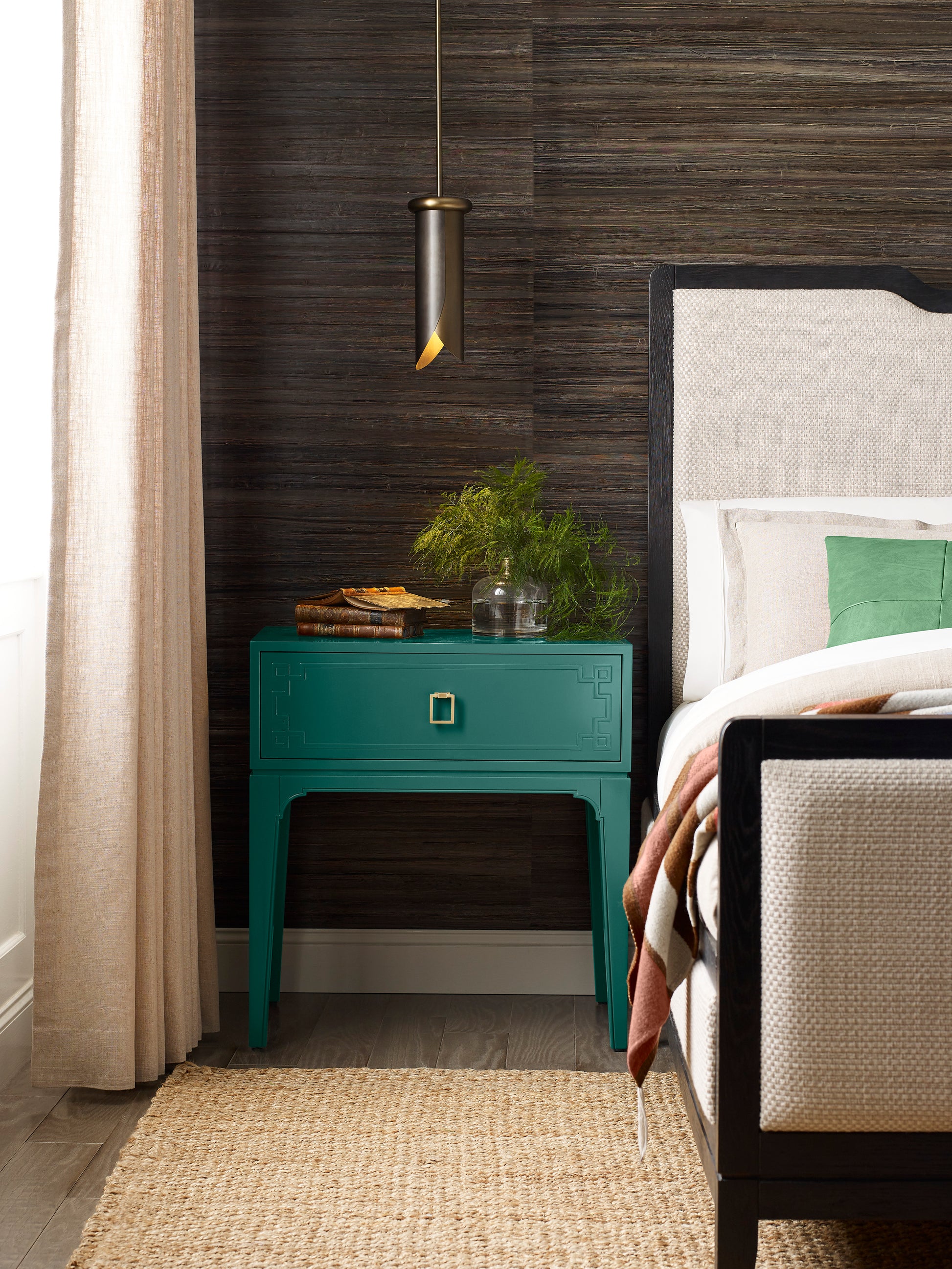 Contrasting cylindrical brass and bronze petals create drama in a space. Raw yet refined, the Stockman Pendant is designed to be flexible across interior applications with one 6" and two 12" rods for customization.