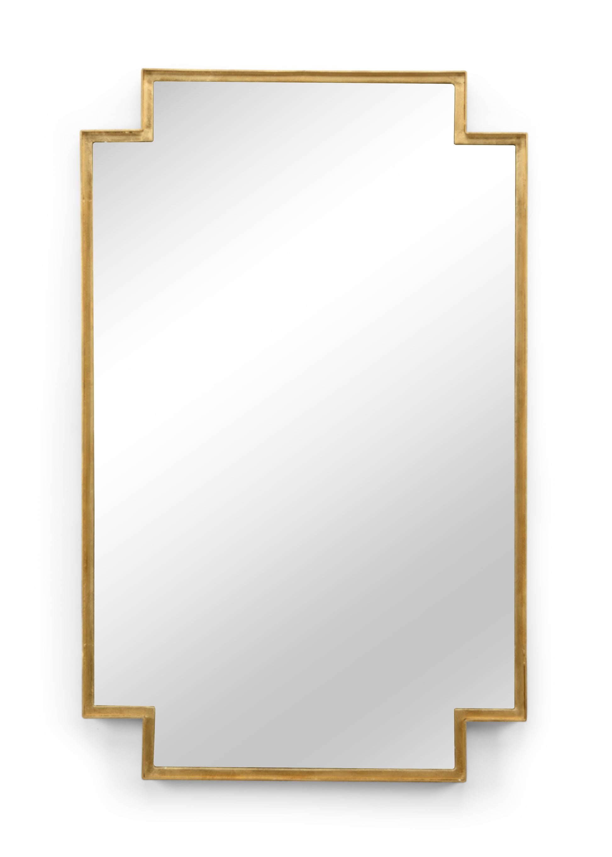 The Fiona Mirror features an antique gold finish on a rectangular iron frame with cut out corners. The simple lines create a wall mirror ideal for a contemporary or traditional design. Mount over a living room chest, bedroom dresser, or entryway console to open up the space and reflect light throughout the room.