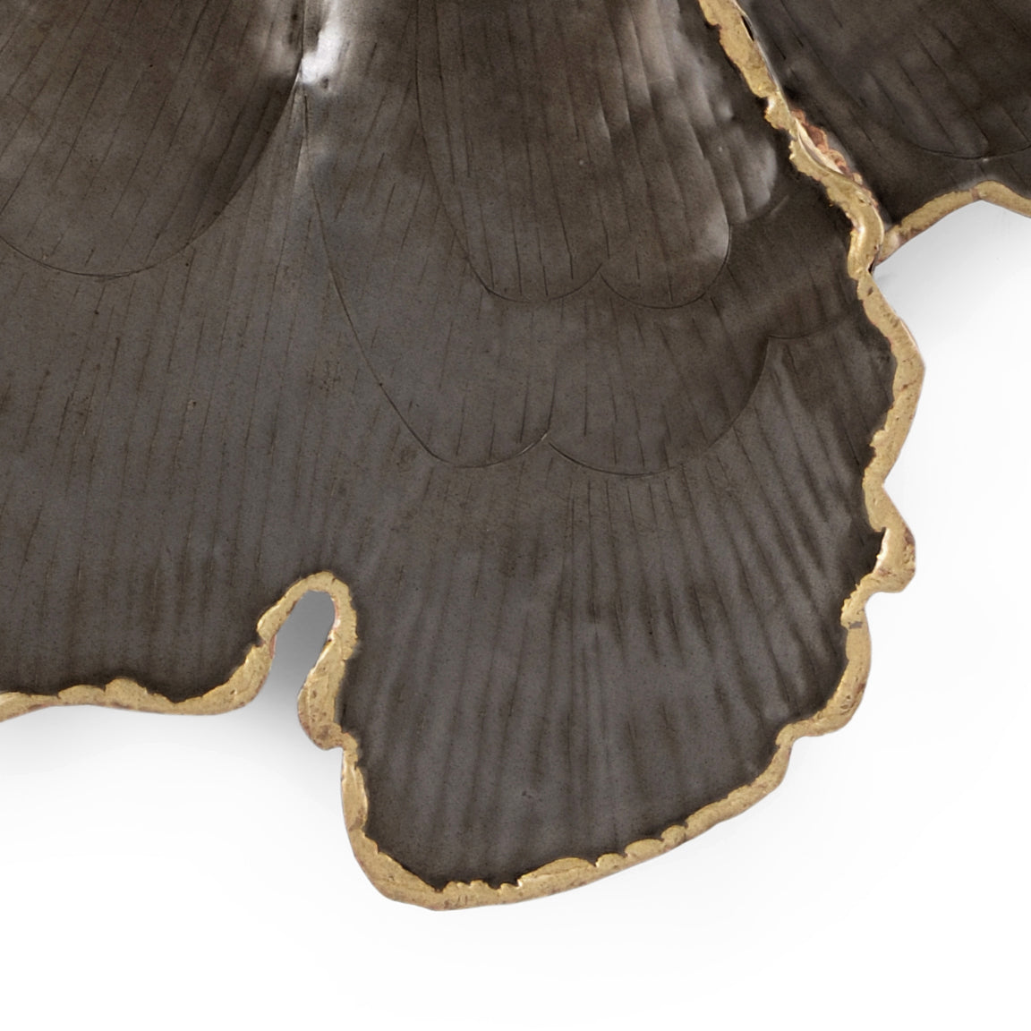 The Lilliana Mirror is formed as a leafy organic making the texture of each leaf the focal point. It is finished in an unexpected gunmetal and brass highlighted edge to make it more neutral in style. It is the perfect accent for a natural element to your decor. An 8" round mirror reflects light throughout your space.