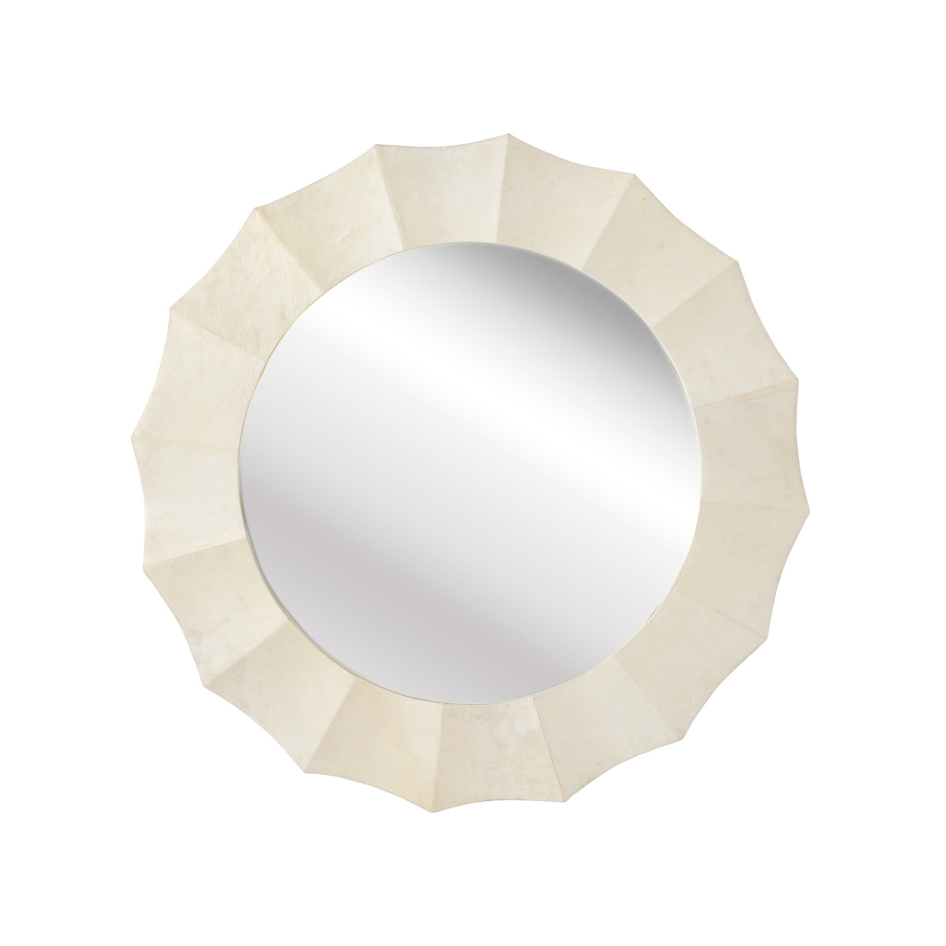 Bring texture and dimension to your modern space with our Bride's Dream mirror. Over a console in the entryway or on an accent wall, this round mirror features a cream parchment covered wood frame that will add an artful sophistication to your decor.