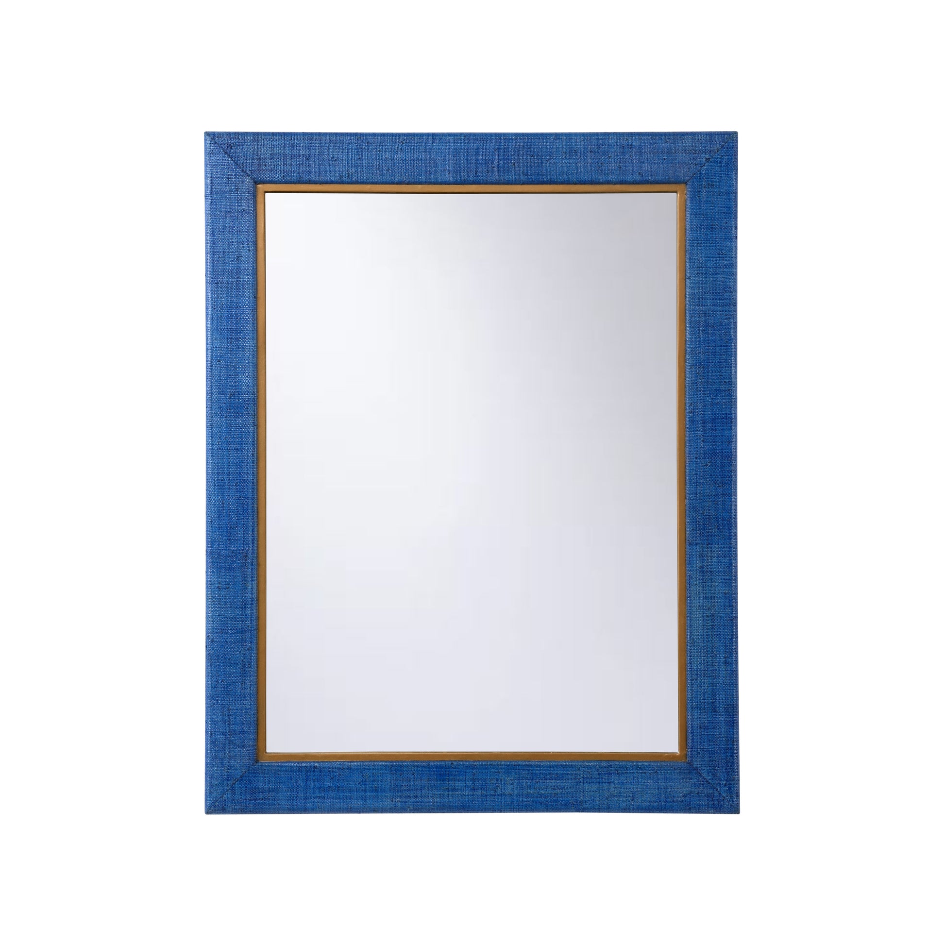 Hand wrapped grass cloth over a wood frame in a cheerful blue color, the Warrick Mirror in cobalt brings understated beauty to a classic silhouette.