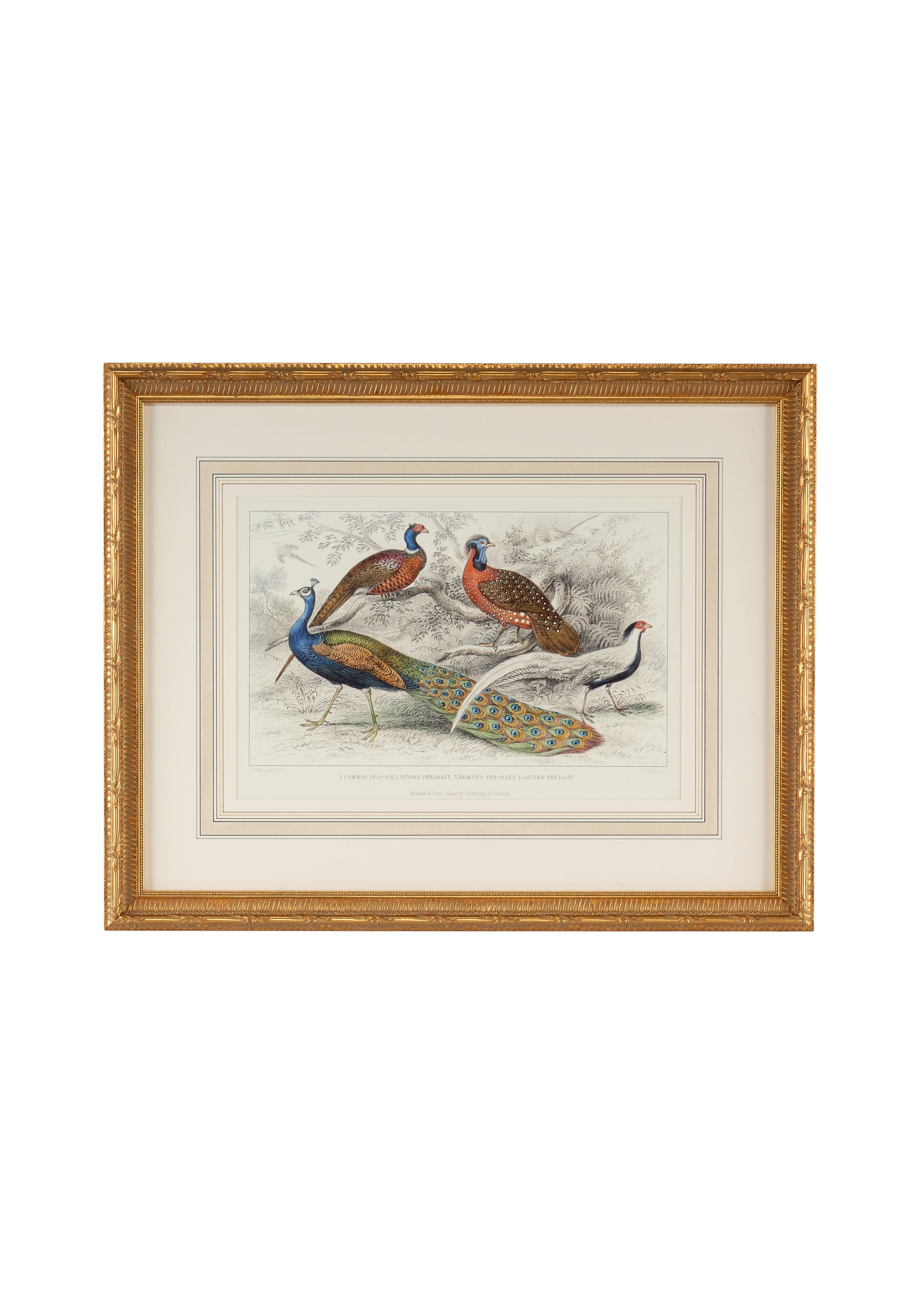 Hand gold leaf frame. Hand drawn. Hand colored french mat. Hand watercolor engraving.