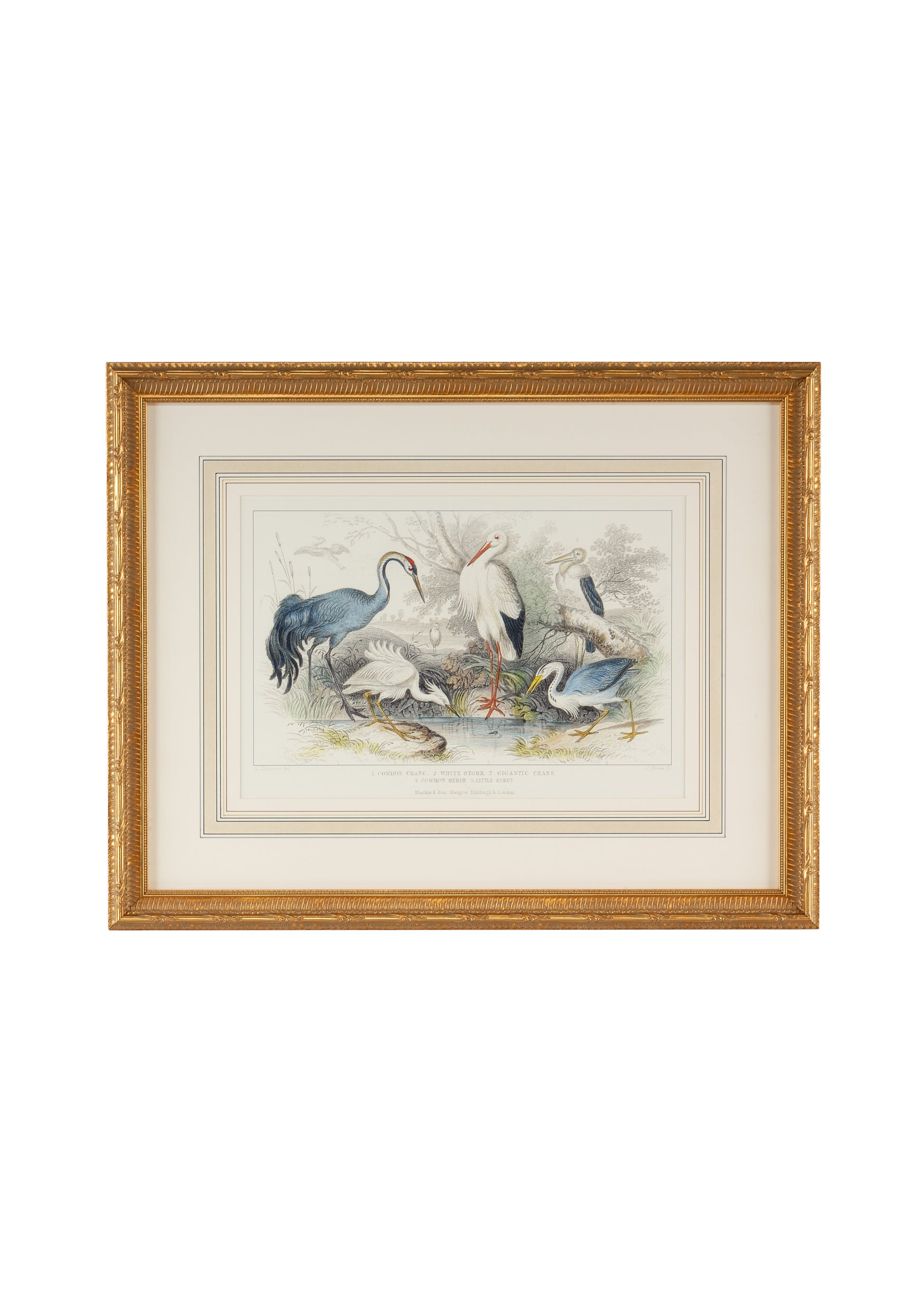 Hand gold leafed frame with glass. Hand drawn. Hand colored french mat. Hand watercolor engraving.