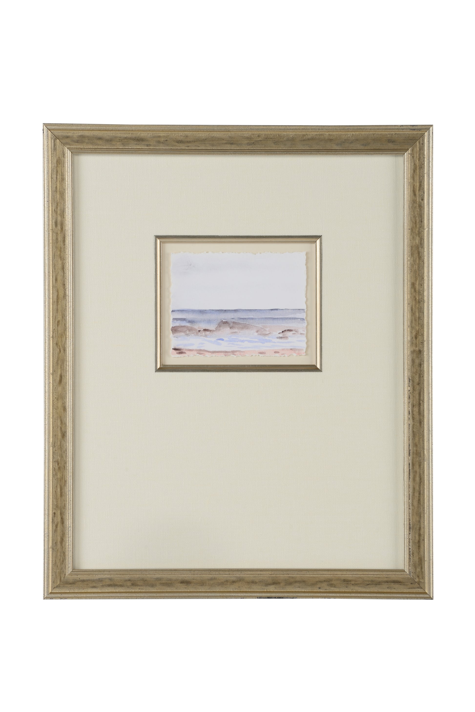 Silver leaf frame with fillet and linen mat. Framed in glass.